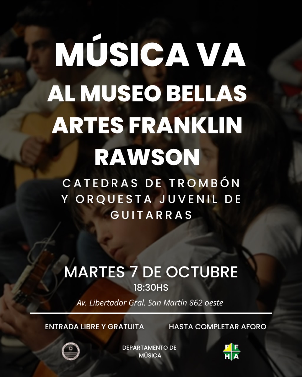 El Ciclo de Música Va llega al Museo Bellas Artes Franklin Rawson (MBAFR) con las Cátedras de Trombón y Orquesta Juvenil de Guitarras.