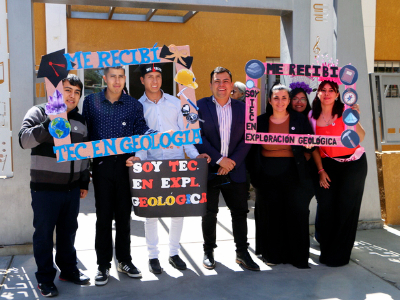 A su vez la directora de la Tecnicatura Universitaria en Exploración Geológica, Esp. Lic. María Martha Caballero, visiblemente conmovida, agradeció el compromiso de los egresados, sus familias y los docentes que los acompañaron.