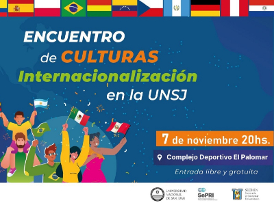 El próximo 7 de noviembre desde las 20 h se desarrollará el “Encuentro de Culturas. Internacionalización en la UNSJ”. Será una oportunidad para conocer a estudiantes de movilidad, degustar comidas típicas y compartir actividades culturales y experiencias de intercambio internacional.